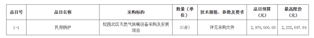 项目名称:校园北区天然气供暖设备采购及安装项目